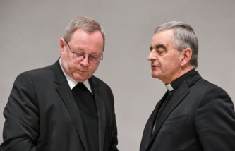 Hinter den Kulissen - Am Rande des G20-Außenministertreffens in Rio de Janeiro äußert sich Annalena Baerbock gegenüber Medienvertretern zu ihrer Reise. Was man normalerweise nicht sehen kann: Vor ihr auf dem Boden steht eine Flasche „Anti-Brumm-Mückenspray“ als Markierung, wo sie ungefähr für die Fernsehkameras stehen soll. - Foto: Bernd von Jutrczenka/dpa